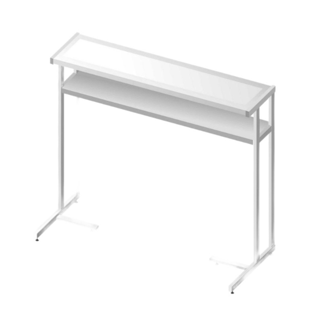 Конструкция оснащена регулируемыми по высоте и закручивающимися ножками, обеспечивая устойчивость и удобство установки на любой поверхности. Стойки и полки выполнены из металла с порошковым покрытием, что гарантирует долговечность, стойкость к механическим повреждениям и лёгкость в уходе.