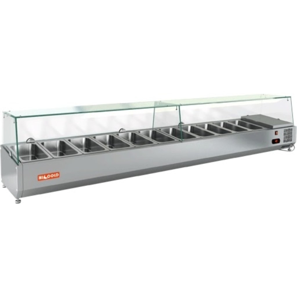 Каталог оборудования Холодильное оборудованиеВитрины для ингредиентовВитрина холодильная для ингредиентов HICOLD VRTG 2280 к PZ3 (1/3) Витрина холодильная для ингредиентов HICOLD VRTG 2280 к PZ3 (1/3) Код товара: 064-658 Поделиться: WhatsAppTelegram СравнитьДобавить в КПВ избранное 0 84 609 ₽ В корзину 0 шт Под заказСамовывоз сегодня бесплатно Взять в кредит Купить в лизинг Получить консультацию в WhatsApp Описание Характеристики Отзывы 0 Инструкции 3 Витрина холодильная для ингредиентов HICOLD VRTG 2280 к PZ3 (1/3) предназначена для охлаждения, кратковременного хранения и демонстрации ингредиентов, салатов и готовых блюд на предприятиях общественного питания и торговли. Устанавливается на холодильные столы для пиццы серии PZ3 благодаря встроенным креплениям в нижней части корпуса. На фото показана аналогичная модель с настольной установкой. Ключевые особенности: Корпус из нержавеющей стали — долговечность, простота ухода. Электронная панель управления — точная регулировка температуры. Исполнение G — стеклянная надстройка для удобного обзора продуктов. Высота витрины — 459 мм — компактное размещение на рабочей поверхности. Вместимость: 11xGN1/3 — рациональная организация хранения (гастроёмкости приобретаются отдельно). Совместимые модели столов: PZ3-1111/SN, PZ3-1111/GN HICOLD VRTG 2280 к PZ3 (1/3) — это профессиональная настольная витрина, которая сочетает компактные размеры, современное управление и высокое качество охлаждения. Отличный выбор для пиццерий, ресторанов и кафе, где важны удобство доступа, скорость работы и эффектная подача продуктов.Изображение товара, представленного на фото, может отличаться от его фактического вида. Показать все Габаритные размеры2280×385×459 ммДиапазон рабочей температурыот +2 до +7 °CДлина2280 ммГлубина385 ммВысота459 ммТип крышкиСтеклянная Гастроемкостей11 штТип гастроемкостейGN1/3 Мощность150 ВтРасход электроэнергии в сутки0,15 кВтНапряжение220 ВТип охлажденияСтатическое Материал изготовленияНержавеющая сталь ХладагентR134 Мощность0,15 кВтВес нетто65 кгВес брутто109 кгТип оттайкиРучная Габариты в упаковке2380×485×559 ммБрендHicold Оставить отзыв Еще никто не оставил отзыв на этот товар Инструкция на HICOLD VRTG 2280 к PZ3.pdfСхема установки на стол.jpgДекларация о соответствии.pdf Похожие товары Перейти в каталог Под заказ 44 649 ₽ Витрина холодильная для ингредиентов HICOLD VRTO 1000 к PZE3 (1/3) Под заказ 45 567 ₽ Витрина холодильная для ингредиентов HICOLD VRTU 1000 1/4 Под заказ 89 848 ₽ Витрина холодильная для ингредиентов HICOLD VRTG 2360 1/3 В наличии 72 104 ₽ Витрина холодильная для ингредиентов TEFCOLD VK33-120 В наличии 54 963 ₽ Витрина холодильная для ингредиентов HICOLD VRTU 1485 1/3 Под заказ 85 419 ₽ Витрина холодильная для ингредиентов HICOLD VRTG 2360 1/4 Под заказ 52 906 ₽ Витрина для ингредиентов Carboma A30 SM 1,6 (7 GN1/4) с крышкой Под заказ 72 081 ₽ Витрина холодильная для ингредиентов HICOLD VRTG 1915 к PZ4 (1/3) С этим товаром покупают Под заказ 108 891 ₽ Стол морозильный HiCold SN 1/BT Под заказ 51 621 ₽ Льдогенератор HURAKAN HKN-IMF20 (пальчики) В наличии 68 097 ₽ Шкаф холодильный Polair СМ 105-S Ранее просмотрено Под заказ 89 578 ₽ Витрина холодильная для ингредиентов HICOLD VRTG 2360 к PZ3 (1/3) В наличии 57 825 ₽ Витрина холодильная для ингредиентов HICOLD VRTU 1835 к PZ3 (1/3) Под заказ 72 729 ₽ Витрина холодильная для ингредиентов HICOLD VRTG 1970 к PZЕ3 (1/3) В наличии 62 800 ₽ Ларь морозильный с прямым стеклом Frostor F 700 C серый