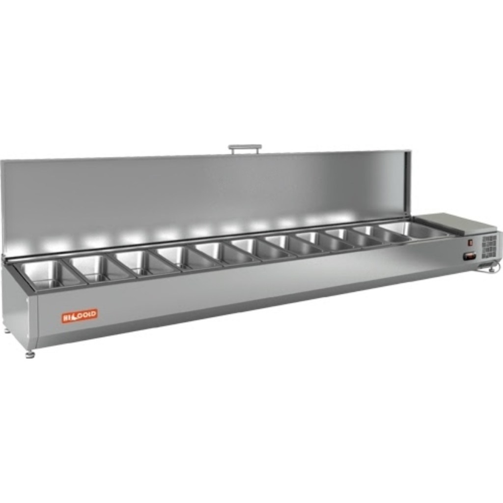 Витрина холодильная для ингредиентов HICOLD VRTU 2360 1/3 предназначена для охлаждения, кратковременного хранения и демонстрации ингредиентов, салатов и готовых блюд на предприятиях общественного питания, кафе и торговых точках.