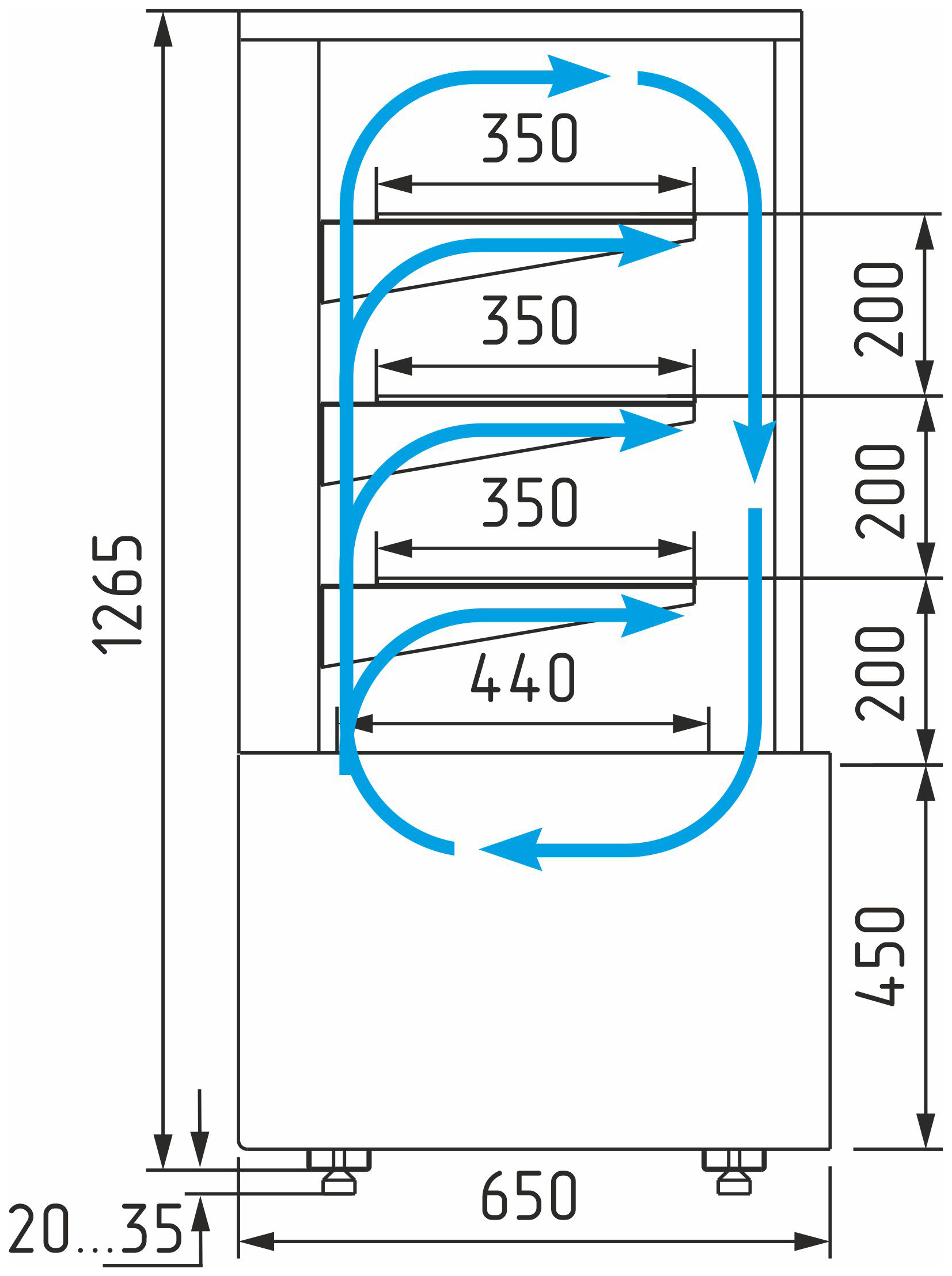 Максимальная высота выкладки продукции – 150 мм