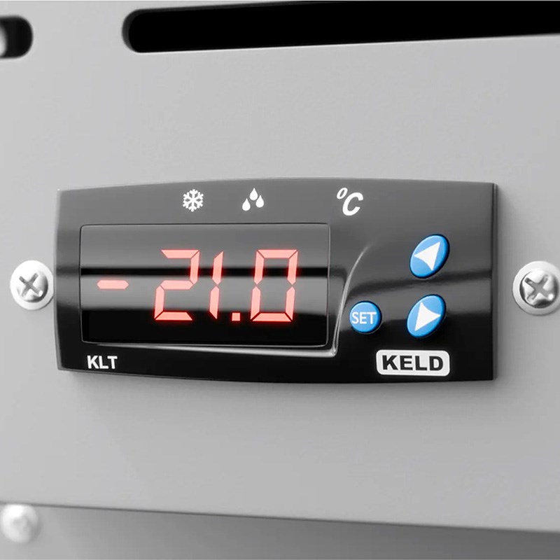 • Электронное управление с дисплеем: Управление осуществляется с помощью электронного контроллера. На дисплее отображается текущая температура внутри ларя, что делает процесс контроля за состоянием оборудования удобным и точным.