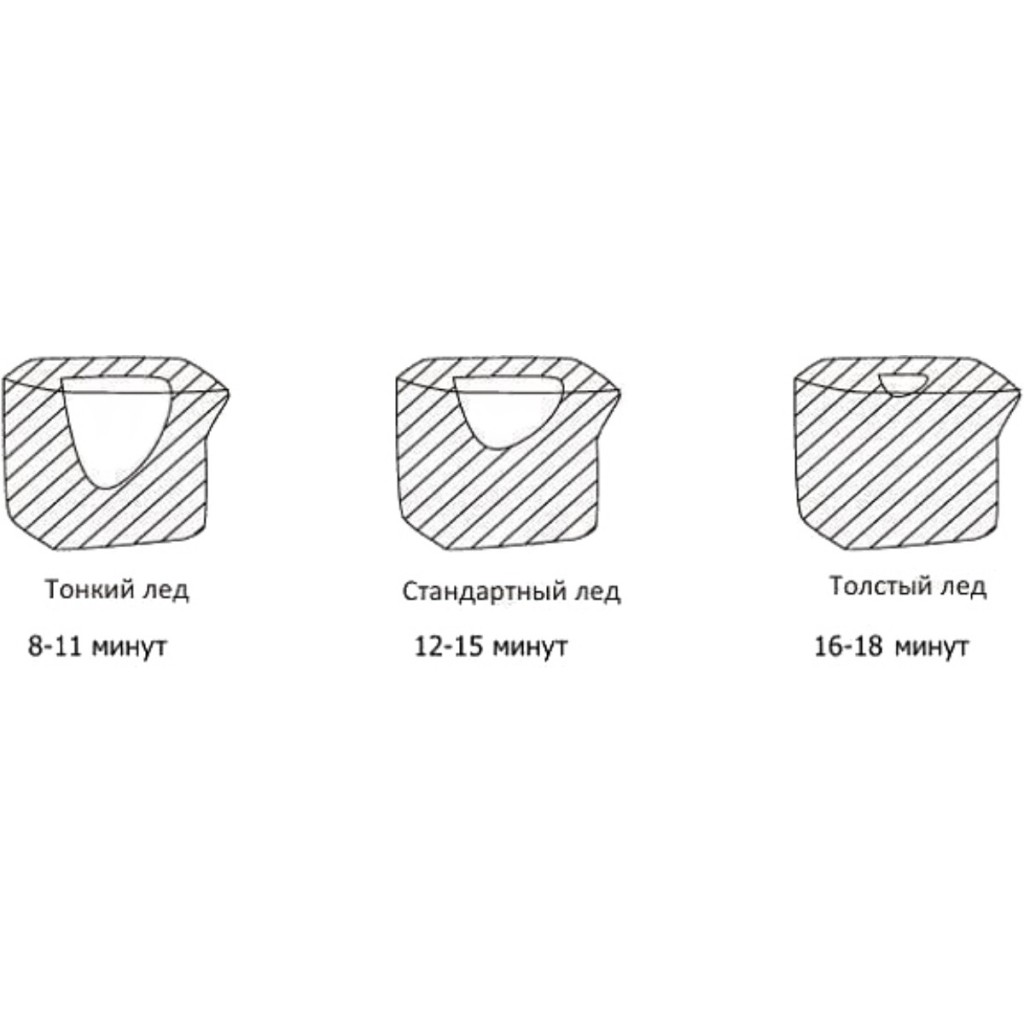 • Время цикла: тонкий лед – 8–11 мин, стандартный – 2–15 мин, толстый – 16–18 мин