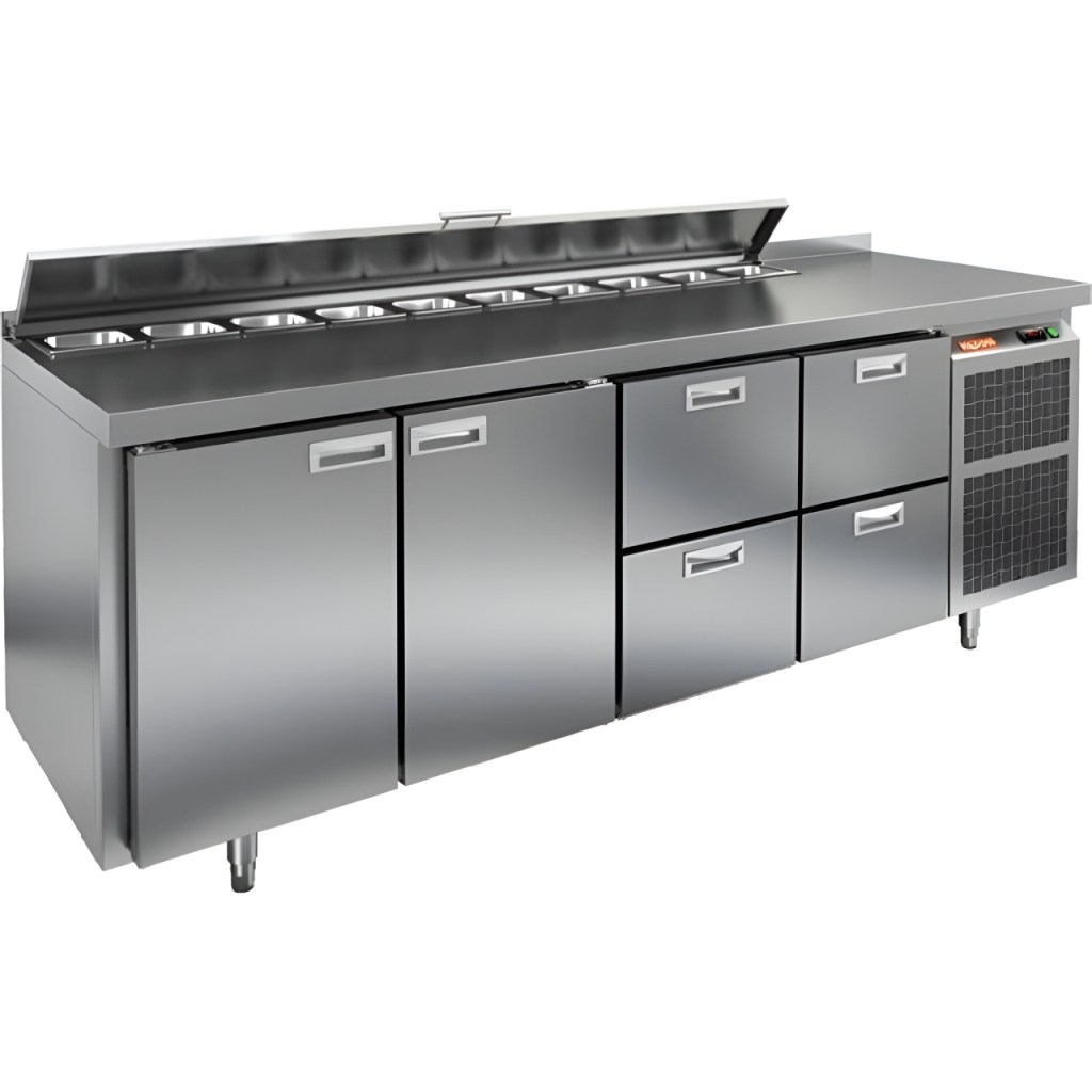 Каталог оборудования Холодильное оборудованиеСтолы охлаждаемыеСтолы холодильные для салатовСтол холодильный для салатов HiCold SL1-332GN (1/3) с крышкой Стол холодильный для салатов HiCold SL1-332GN (1/3) с крышкой Код товара: 064-851 Поделиться: WhatsAppTelegram СравнитьДобавить в КПВ избранное 0 290 692 ₽ В корзину 0 шт Под заказСамовывоз сегодня бесплатно Взять в кредит Купить в лизинг Получить консультацию в WhatsApp Описание Характеристики Отзывы 0 Инструкции 1 Стол холодильный для салатов HiCold SL1-332GN (1/3) предназначен для использования на предприятиях общественного питания и торговли. Он объединяет рабочую поверхность и охлаждаемый отсек, что делает его удобным решением для хранения, охлаждения и подготовки ингредиентов при приготовлении салатов, пиццы и других блюд. Такая конструкция позволяет повару работать быстрее и эффективнее, так как все необходимые продукты находятся под рукой. Корпус и столешница выполнены из прочной нержавеющей стали, устойчивой к коррозии и легко поддающейся санитарной обработке. Металлическая крышка защищает продукты от загрязнений и сохраняет их свежесть. Особенности модели: Электронная панель управления — точная настройка температурного режима. 8 выдвижных ящика — быстрое размещение и замена продуктов. Вместимость салат-бара — до 8 гастроемкостей глубиной до 100 мм. Автоматические доводчики — комфорт при загрузке/выгрузке. Легкозаменяемые магнитные уплотнители — надежная герметичность. Открытая агрегатная часть — быстрый доступ для обслуживания. Регулируемые по высоте ножки — устойчивость даже на неровном полу. Толщина столешницы, борта и теплоизоляции — 50 мм, что обеспечивает прочность и энергоэффективность конструкции. HiCold SL1-332GN (1/3) — практичное и удобное решение для профессиональной кухни, обеспечивающее удобную подготовку и хранение ингредиентов.Изображение товара, представленного на фото, может отличаться от его фактического вида. Показать все Габаритные размеры1835×700×850 ммДиапазон рабочей температурыот +2 до +10 °CРасположение агрегатаБоковое Материал столешницыНержавеющая Тип столаС дверьми и ящиками Тип двериГлухая Объём505 лКоличество дверей2 штТип гастроемкостейGN 1/3 Количество ящиков6 штРазмер полки530×325 ммНапряжение220 ВМощность0,46 кВтТип охлажденияДинамическое Тип оттайкиАвтоматическая СтолешницаС бортом Габариты в упаковке2000×850×1000 ммВес нетто120 кгВес брутто140 кгБрендHicold Оставить отзыв Еще никто не оставил отзыв на этот товар Декларация о соответствии.pdf Ранее просмотрено Под заказ 201 682 ₽ Стол холодильный для салатов HiCold SL2-22GN (1/6) без крышки Под заказ 178 192 ₽ Стол холодильный для салатов HiCold SLE1-112GN (1/3) О с крышкой Под заказ 207 532 ₽ Стол холодильный для салатов HiCold SLE3-1111GN высокое стекло
