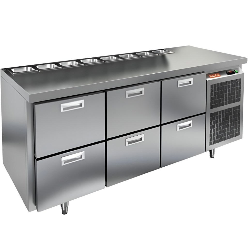 Каталог оборудования Холодильное оборудованиеСтолы охлаждаемыеСтолы холодильные для салатовСтол холодильный для салатов HiCold SL2-222GN (1/6) О без крышки Стол холодильный для салатов HiCold SL2-222GN (1/6) О без крышки Код товара: 064-818 Поделиться: WhatsAppTelegram СравнитьДобавить в КПВ избранное 0 255 861 ₽ В корзину 0 шт Под заказСамовывоз сегодня бесплатно Взять в кредит Купить в лизинг Получить консультацию в Max Описание Характеристики Отзывы 0 Инструкции 1 Стол холодильный для салатов HiCold SL2-222GN (1/6) О без крышки предназначен для использования на предприятиях общественного питания и торговли. Он подходит для хранения, обработки и кратковременного охлаждения ингредиентов, применяемых при приготовлении пиццы, салатов, закусок и других блюд. Модель совмещает охлаждаемый объем и рабочую поверхность, что значительно повышает удобство и скорость работы персонала. Корпус и столешница выполнены из прочной и гигиеничной нержавеющей стали, устойчивой к влаге, загрязнениям и механическим повреждениям. Особенности модели: Электронная панель управления — точная настройка температуры. Салат-бар на 8 гастроемкостей — быстрый доступ к ингредиентам. 6 внутренних ящиков — удобное размещение и легкая замена продуктов. Автоматические доводчики дверей — комфортная эксплуатация. Съёмные магнитные уплотнители — герметичность и стабильная температура. Открытая агрегатная часть — лёгкое обслуживание. Регулируемые ножки — установка на любой поверхности. Глубина гастроемкостей до 150 мм, столешница и теплоизоляция — 50 мм. HiCold SL2-222GN (1/6) О без крышки — универсальное и функциональное решение для профессиональной кухни, позволяющее оптимизировать рабочие процессы и повысить производительность за счет удобного хранения и быстрого доступа к ингредиентам.Изображение товара, представленного на фото, может отличаться от его фактического вида. Показать все Габаритные размеры1835×700×850 ммДиапазон рабочей температурыот +2 до +10 °CРасположение агрегатаБоковое Материал столешницыНержавеющая Тип столаС ящиками Объём505 лТип гастроемкостейGN 1/6 Количество ящиков6 штНапряжение220 ВМощность0,5 кВтТип охлажденияДинамическое Тип оттайкиАвтоматическая СтолешницаБез борта Габариты в упаковке2000×850×1000 ммВес нетто130 кгВес брутто180 кгБрендHicold Оставить отзыв Еще никто не оставил отзыв на этот товар Декларация о соответствии.pdf Ранее просмотрено Под заказ 45 097 ₽ Дверь холодильная распашная одностворчатая СТ-РДО-1000*2200/80