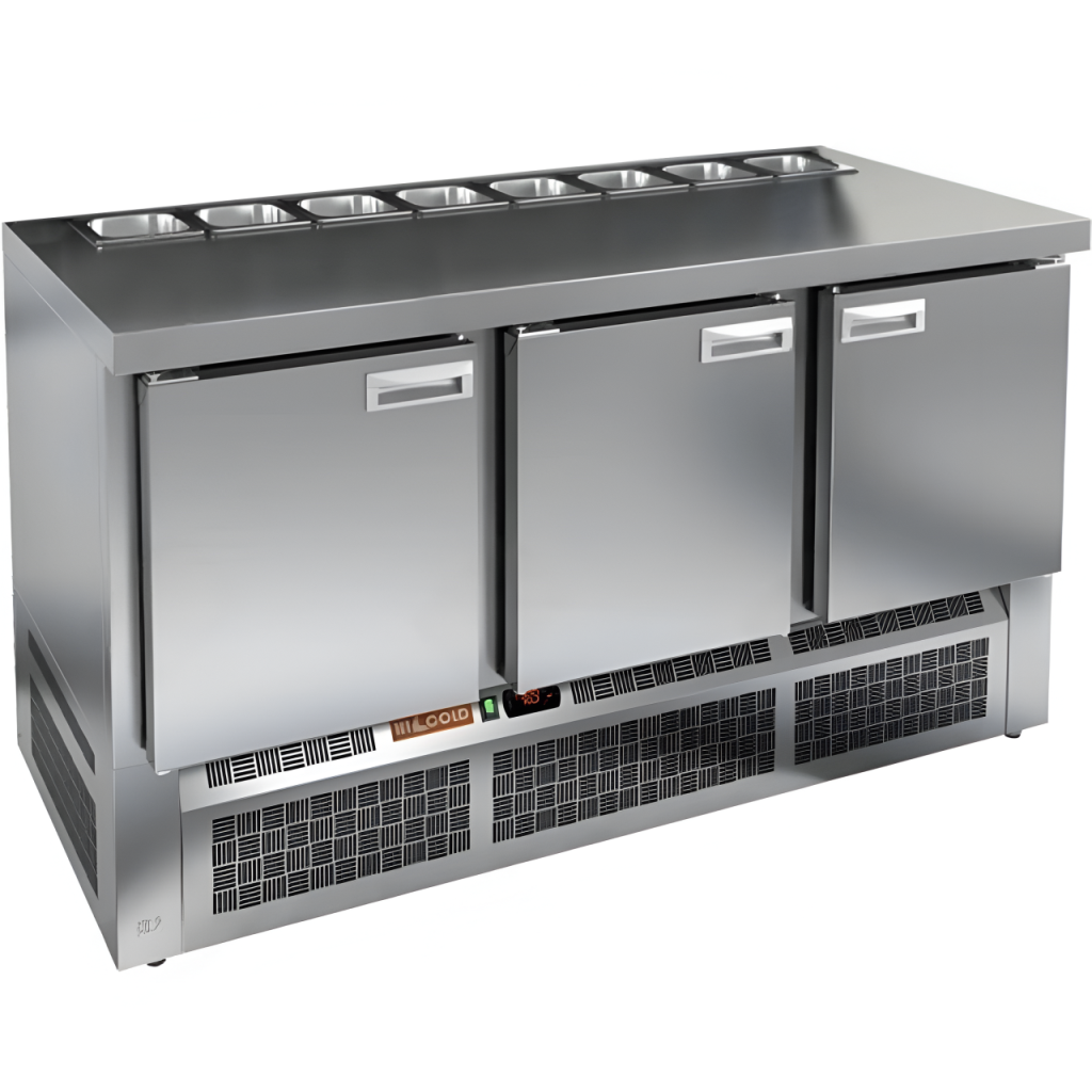 Каталог оборудования Холодильное оборудованиеСтолы охлаждаемыеСтолы холодильные для салатовСтол холодильный для салатов HiCold SLE1-111GN (1/3) без крышки Стол холодильный для салатов HiCold SLE1-111GN (1/3) без крышки Код товара: 064-540 Поделиться: WhatsAppTelegram СравнитьДобавить в КПВ избранное 0 143 361 ₽ В корзину 0 шт Под заказСамовывоз сегодня бесплатно Взять в кредит Купить в лизинг Получить консультацию в WhatsApp Описание Характеристики Отзывы 0 Инструкции 2 Стол холодильный для салатов HiCold SLE1-111SN (1/3) без крышки предназначен для предприятий общественного питания и торговли. Он позволяет хранить и обрабатывать ингредиенты для пиццы, салатов и других блюд, а также охлаждать и кратковременно хранить скоропортящиеся продукты и напитки. Модель совмещает рабочую поверхность и охлаждаемый объем, что обеспечивает удобство работы повара: все необходимые компоненты всегда под рукой. Корпус и столешница выполнены из нержавеющей стали, что гарантирует долговечность и простоту ухода. Особенности: Динамическая система охлаждения — равномерное распределение температуры по всему объему. Автоматическая оттайка — упрощает уход за оборудованием. Электронная панель управления — удобная настройка температуры и режимов работы. 3 вместительные внутренние полки формата GN 1/1 — оптимальное хранение ингредиентов. Автоматические доводчики дверей с фиксатором открытого положения — комфорт и безопасность работы. Легкозаменяемые магнитные уплотнители — простота обслуживания. Открытая агрегатная часть — облегчает доступ для обслуживания. Регулируемые по высоте ножки — адаптация к рабочей поверхности. Размер полки: 430×325 мм (GN 1/1) Максимальная глубина гастроемкостей: 100 мм Столешница с бортом, без крышки: толщина столешницы и теплоизоляции — 50 мм, высота борта — 50 мм HiCold SLE1-111SN (1/3) без крышки — надежный и удобный стол для профессиональной кухни. Он обеспечивает эффективное охлаждение и хранение ингредиентов, а комбинированная рабочая поверхность с холодильным объемом упрощает работу повара, делая процесс приготовления быстрее и удобнее.Изображение товара, представленного на фото, может отличаться от его фактического вида. Показать все Габаритные размеры1485×700×800 ммДиапазон рабочей температурыот +2 до +10 °CРасположение агрегатаНижнее Материал столешницыНержавеющая Тип столаС дверьми Тип двериГлухая Объём375 лКоличество дверей3 штТип гастроемкостейGN 1/3 Размер полки530×325 ммНапряжение220 ВМощность0,46 кВтТип охлажденияДинамический Тип оттайкиАвтоматическая СтолешницаС бортом Вес нетто135 кгВес брутто195 кгБрендHicold Оставить отзыв Еще никто не оставил отзыв на этот товар Паспорт на HICOLD SLE1-111SN.pdfДекларация о соответствии.pdf Ранее просмотрено Под заказ 90 118 ₽ Дверь холодильная распашная двустворчатая СТ-РДД-2200*2200/80 Под заказ 184 581 ₽ Стол холодильный для салатов HiCold SLE2-22SN (1/6) с крышкой Под заказ 146 332 ₽ Стол холодильный для салатов HiCold SLE2-11GN (1/6) М с крышкой Под заказ 15 990 ₽ Ванна моечная с бортом МХМ МБ-2-0,3-0,53/1,01 (AISI 430, t=0,6) Под заказ 154 341 ₽ Стол холодильный для салатов HiCold SLE1-12SN (1/3) с крышкой