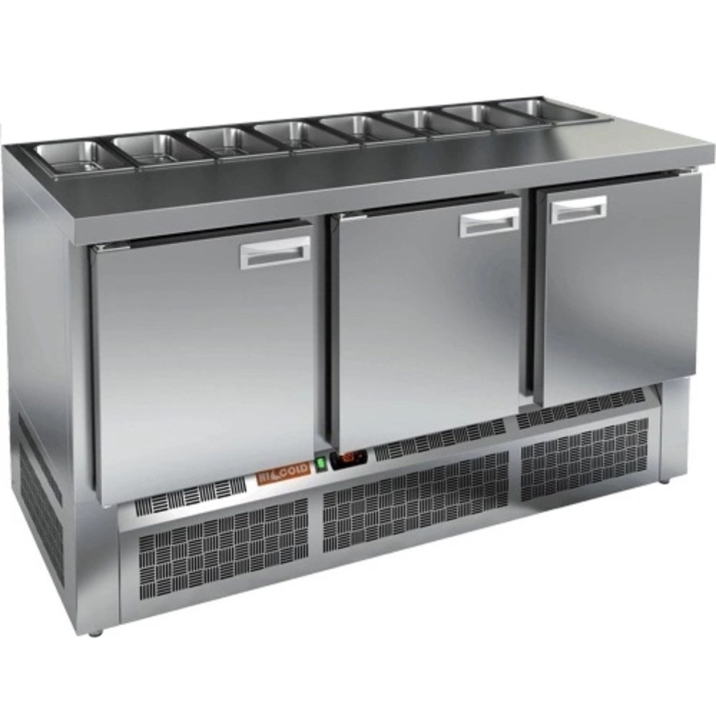 Стол холодильный для салатов HiCold SLE1-111SN (1/3) О без крышки предназначен для профессионального использования в заведениях общественного питания и торговли. Он обеспечивает не только охлаждение и кратковременное хранение продуктов, но и удобную рабочую поверхность для подготовки ингредиентов, что особенно актуально при приготовлении салатов, пиццы и холодных блюд.