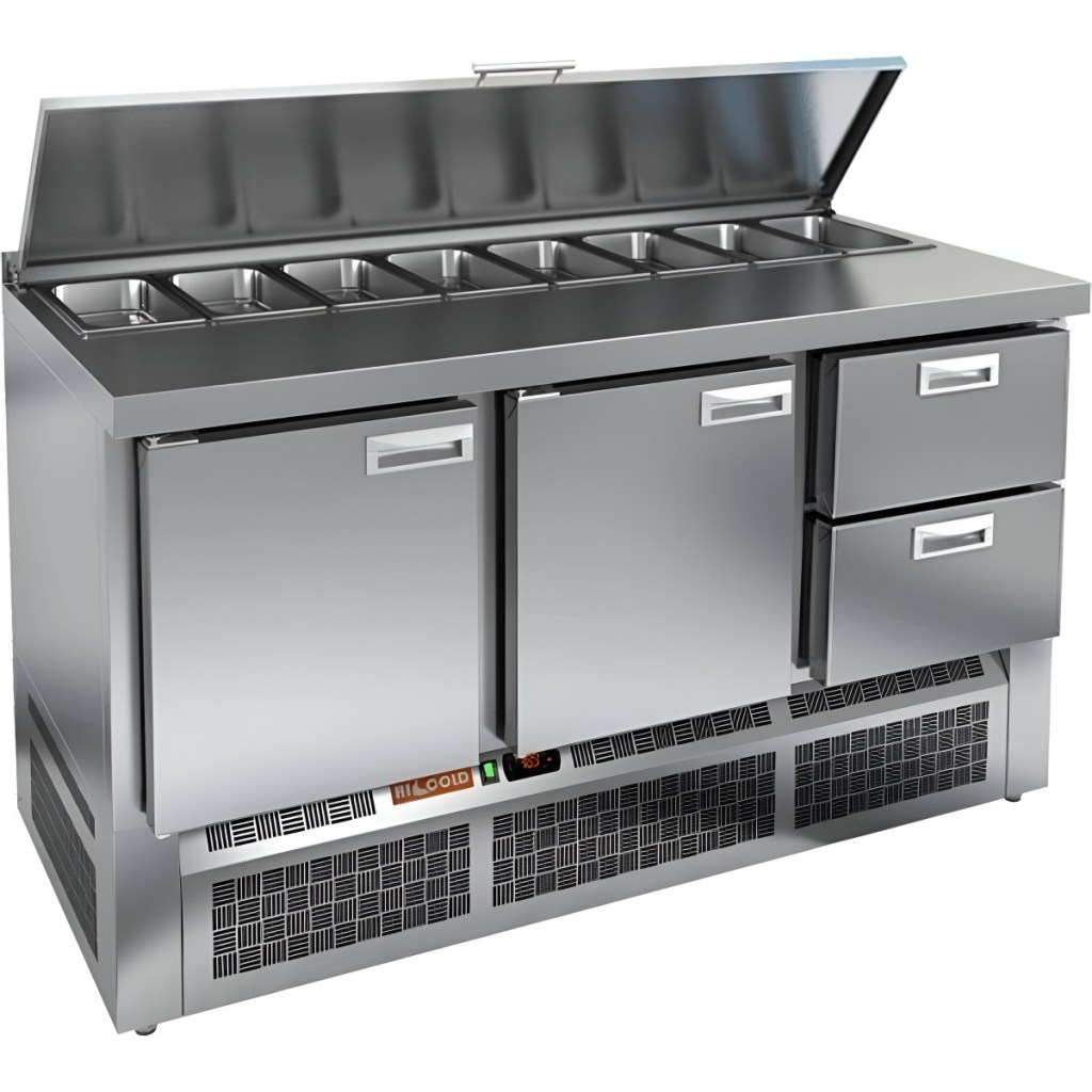 Каталог оборудования Холодильное оборудованиеСтолы охлаждаемыеСтолы холодильные для салатовСтол холодильный для салатов HiCold SLE1-112GN (1/3) О с крышкой Стол холодильный для салатов HiCold SLE1-112GN (1/3) О с крышкой Код товара: 064-903 Поделиться: WhatsAppTelegram СравнитьДобавить в КПВ избранное 0 178 192 ₽ В корзину 0 шт Под заказСамовывоз сегодня бесплатно Взять в кредит Купить в лизинг Получить консультацию в WhatsApp Описание Характеристики Отзывы 0 Инструкции 2 Стол холодильный для салатов HiCold SLE1-112GN (1/3) О с крышкой предназначен для профессионального использования в заведениях общественного питания и торговли. Он обеспечивает не только охлаждение и кратковременное хранение продуктов, но и удобную рабочую поверхность для подготовки ингредиентов, что особенно актуально при приготовлении салатов, пиццы и холодных блюд. Корпус и столешница изготовлены из высококачественной нержавеющей стали, что гарантирует долговечность, легкость в уходе и соответствие санитарным требованиям. Металлическая крышка защищает продукты от загрязнений и сохраняет их свежесть. Основные особенности: Электронная панель управления — для точной настройки температуры и простоты эксплуатации. 2 вместительные полки GN 1/1 — обеспечивают организованное хранение продуктов. 2 глухие дверцы с автоматическими доводчиками и фиксацией — повышают удобство использования, особенно при загрузке и выгрузке продуктов. Салат-бар на 8 гастроемкостей — удобно размещает большое количество ингредиентов под рукой. Автоматические доводчики дверей — с фиксацией в открытом положении для комфортной загрузки. Магнитные уплотнители — легко заменяются и обеспечивают надежное уплотнение. Открытая агрегатная часть — облегчает доступ для обслуживания и ремонта. Регулируемые по высоте ножки — позволяют точно выставить уровень на неровной поверхности. Максимальная глубина гастроемкостей — 100 мм — подходит для хранения различных типов продуктов. Столешница толщиной 50 мм без борта — полноценная рабочая зона. Теплоизоляция толщиной 50 мм — сохраняет стабильный температурный режим и снижает энергозатраты. HiCold SLE1-112GN (1/3) О с крышкой — это практичное решение для профессиональных кухонь, где важно сочетание удобства, вместительности и надежности. Модель позволяет организовать рабочее пространство эффективно и с комфортом для персонала.Изображение товара, представленного на фото, может отличаться от его фактического вида. Показать все Габаритные размеры1485×700×850 ммДиапазон рабочей температурыот +2 до +10 °CРасположение агрегатаНижнее Материал столешницыНержавеющая Тип столаС дверьми и ящиками Тип двериГлухая Объём320 лКоличество дверей2 штТип гастроемкостейGN 1/3 Количество ящиков2 штРазмер полки530х325 ммНапряжение220 ВМощность0,22 кВтТип охлажденияДинамическое Тип оттайкиАвтоматическая СтолешницаБез борта Вес нетто94 кгВес брутто152 кгБрендHicold Оставить отзыв Еще никто не оставил отзыв на этот товар Паспорт на HICOLD SLE1-112GN.pdfДекларация о соответствии.pdf Ранее просмотрено Под заказ 207 532 ₽ Стол холодильный для салатов HiCold SLE3-1111GN высокое стекло