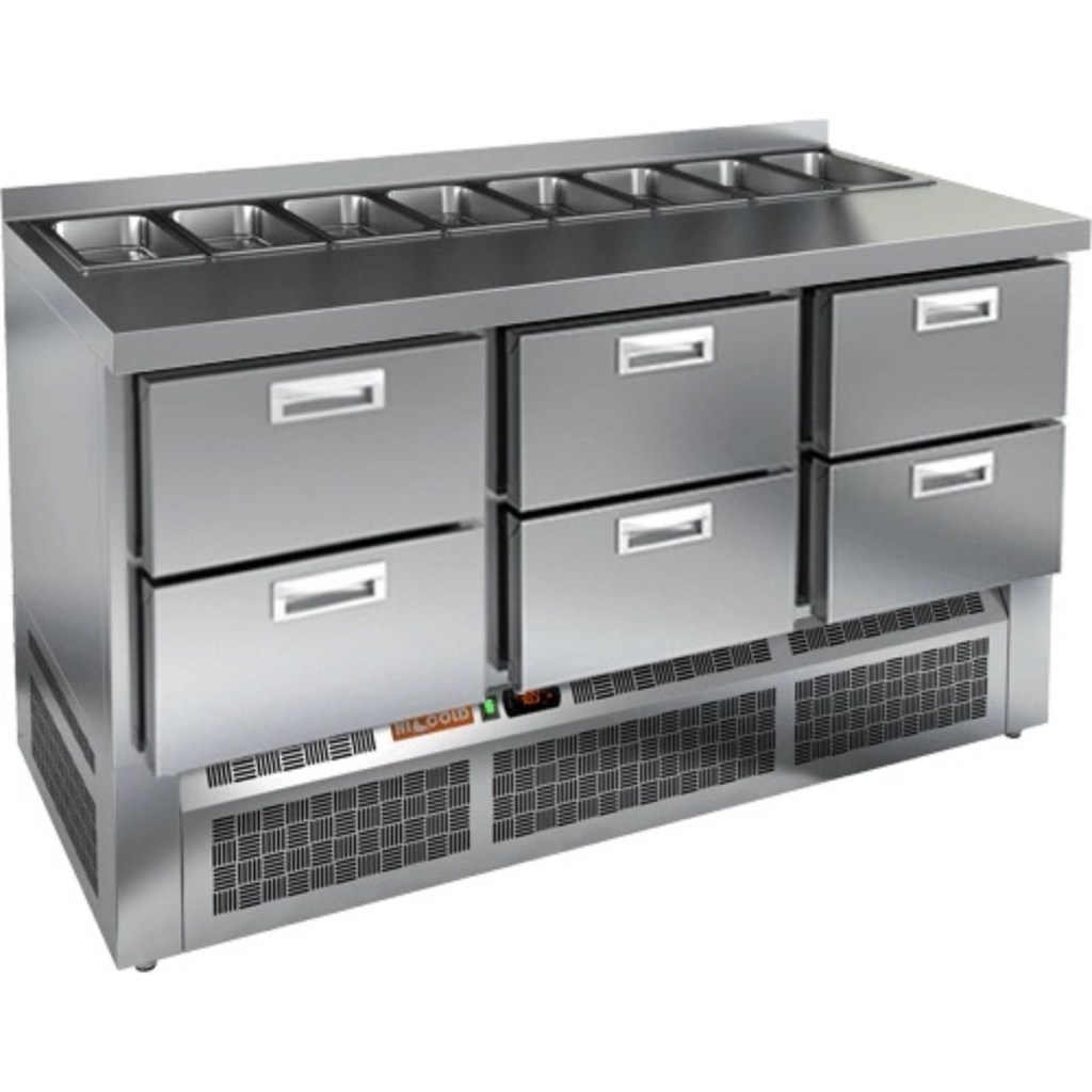 Модель сочетает в себе прочную рабочую поверхность и охлаждаемый внутренний объем, что упрощает процесс приготовления: все необходимые ингредиенты всегда под рукой. Корпус и столешница изготовлены из нержавеющей стали, устойчивой к воздействию влаги, механическим повреждениям и легко поддающейся очистке.