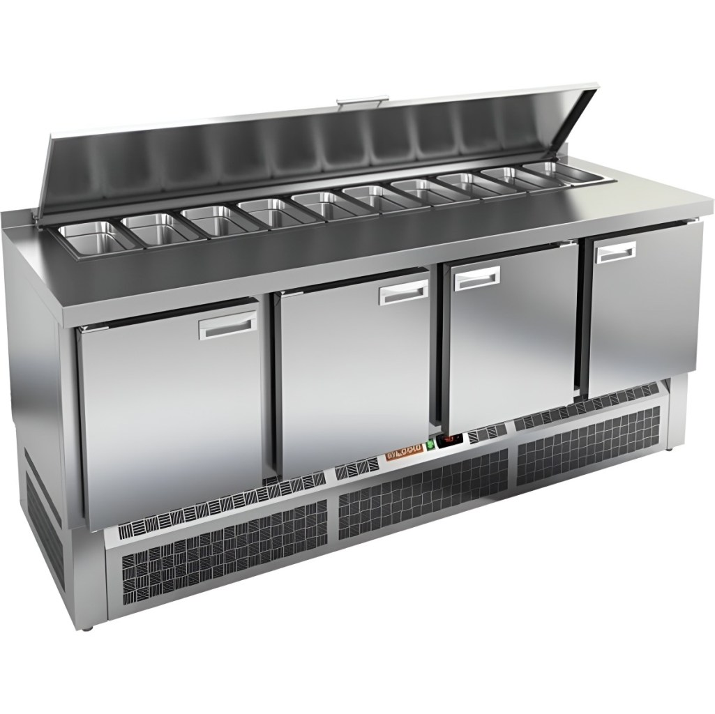 Каталог оборудования Холодильное оборудованиеСтолы охлаждаемыеСтолы холодильные для салатовСтол холодильный для салатов HiCold SLE2-1111GN (1/6) Стол холодильный для салатов HiCold SLE2-1111GN (1/6) Код товара: 061-995 Поделиться: WhatsAppTelegram СравнитьДобавить в КПВ избранное 0 171 801 ₽ В корзину 0 шт В наличии на 1 складеДоступно для заказа 2 шт.Наличие на складахМоскваМО, Бритово, Раменский гор. округ, Складской комплекс ССТ, корп. 2, секция 2В наличии 2 шт.Самовывоз сегодня бесплатно Расчет стоимости доставкиОткудаМоскваКудаМоскваСанкт-ПетербургАстраханьБарнаулБелгородБрянскВладивостокВолгоградВоронежЕкатеринбургИвановоИжевскИркутскКазаньКалининградКемеровоКировКраснодарКрасноярскКурскЛипецкМагнитогорскМахачкалаНабережные ЧелныНижний НовгородНижний ТагилНовокузнецкНовосибирскОмскОренбургПензаПермьПятигорскРостов-на-ДонуРязаньСамараСаратовСимферопольСтавропольТверьТольяттиТомскТулаТюменьУлан-УдэУльяновскУфаХабаровскЧебоксарыЧелябинскЯрославльРассчитатьРасчет стоимости доставки указан приблизительный, более точный расчет Вам может осуществить сотрудник транспортной компании. Взять в кредит Купить в лизинг Получить консультацию в WhatsApp Описание Характеристики Отзывы 0 Инструкции 2 Стол холодильный для салатов HiCold SLE2-1111GN (1/6) — это профессиональный салатный стол, предназначенный для использования в кафе, ресторанах, пиццериях и других предприятиях общественного питания. Он совмещает в себе просторную рабочую поверхность и охлаждаемый объем, обеспечивая удобство и эффективность при приготовлении различных блюд — от салатов до пиццы. Благодаря корпусу и столешнице из нержавеющей стали, оборудование устойчиво к коррозии, легко очищается и соответствует санитарным требованиям. Ключевые особенности: Электронная панель управления — обеспечивает точное регулирование температуры и удобство в эксплуатации. 4 вместительные полки формата GN 1/1 — позволяют организовать хранение большого объема продуктов и ингредиентов. Салат-бар вмещает до 11 гастроемкостей — оптимален для широкого ассортимента заготовок. Автоматические доводчики дверей с фиксацией — повышают удобство использования, особенно при загрузке и выгрузке продуктов. Магнитные уплотнители — легко заменяются и обеспечивают плотное прилегание, предотвращая утечку холода. Открытая агрегатная часть — облегчает техническое обслуживание. Регулируемые ножки — позволяют установить стол на любой поверхности, компенсируя неровности пола. Глубина гастроемкостей — до 100 мм, толщина столешницы — 50 мм, высота борта — 50 мм, толщина теплоизоляции — 50 мм — обеспечивают стабильное охлаждение и прочность конструкции. HiCold SLE2-1111GN — это функциональный и вместительный салатный стол, который идеально подходит для профессиональных кухонь с интенсивной загрузкой. Он сочетает в себе надежность, удобство и продуманную конструкцию для максимальной производительности на рабочем месте.Изображение товара, представленного на фото, может отличаться от его фактического вида. Показать все Габаритные размеры1970х700х850 ммДиапазон рабочей температурыот +2 до +10 °CРасположение агрегатаНижнее Материал столешницыНержавеющая Тип столаС дверьми Тип двериГлухая Объём505 лКоличество дверей4 штТип гастроемкостейGN 1/6 Размер полки530х325 ммНапряжение220 ВМощность0,46 кВтТип охлажденияДинамиче