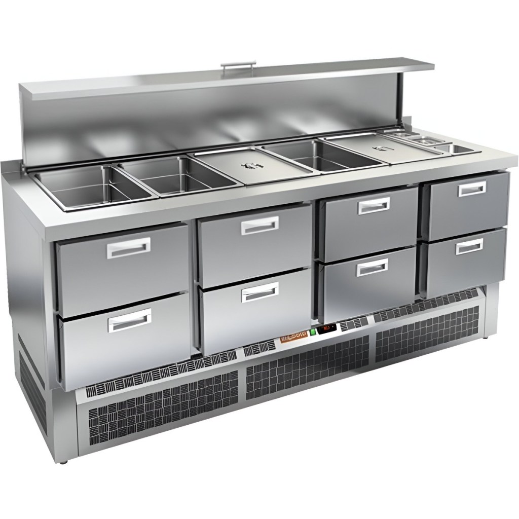 Каталог оборудования Холодильное оборудованиеСтолы охлаждаемыеСтолы холодильные для салатовСтол холодильный для салатов HiCold SLE3-2222GN с крышкой Стол холодильный для салатов HiCold SLE3-2222GN с крышкой Код товара: 064-947 Поделиться: WhatsAppTelegram СравнитьДобавить в КПВ избранное 0 311 482 ₽ В корзину 0 шт Под заказСамовывоз сегодня бесплатно Взять в кредит Купить в лизинг Получить консультацию в WhatsApp Описание Характеристики Отзывы 0 Инструкции 2 Стол холодильный для салатов HiCold SLE3-2222GN с крышкой предназначен для использования на предприятиях общественного питания и торговли. Он сочетает в себе функции охлаждения и хранения ингредиентов, используемых при приготовлении салатов, закусок, сэндвичей и других блюд, требующих кратковременного поддержания температуры. Модель обеспечивает удобный доступ к продуктам и позволяет повару работать максимально эффективно. Корпус и столешница изготовлены из нержавеющей стали, что гарантирует долговечность конструкции, устойчивость к коррозии и соответствие санитарным нормам. Металлическая крышка защищает продукты от загрязнений и сохраняет их свежесть. Особенности модели: Электронная панель управления позволяет точно настраивать температурный режим 8 выдвижных ящиков обеспечивают удобное хранение ингредиентов и упрощают организацию рабочего пространства Вместимость салат-бара — 5 гастроемкостей формата GN 1/1 и 3 гастроемкости формата GN 1/6 Поддерживается использование гастроемкостей глубиной до 100 мм Двери оснащены автоматическими доводчиками с фиксацией в открытом положении Легкозаменяемые магнитные уплотнители обеспечивают герметичность и простоту обслуживания Открытая агрегатная часть упрощает доступ для сервисного обслуживания Регулируемые по высоте ножки позволяют адаптировать стол под любую рабочую поверхность Толщина столешницы и теплоизоляции составляет 50 мм, что гарантирует прочность и энергоэффективность Наличие борта повышает гигиеничность работы и облегчает поддержание чистоты на кухне. HiCold SLE3-2222GN с крышкой — это надёжный и практичный салатный стол, который сочетает в себе охлаждаемый отсек и удобную рабочую зону. Модель идеально подходит для интенсивной эксплуатации в профессиональных кухнях, обеспечивая быстрое обслуживание и надёжное хранение ингредиентов.Изображение товара, представленного на фото, может отличаться от его фактического вида. Показать все Габаритные размеры1970×700×1055 ммДиапазон рабочей температурыот +2 до +10 °CРасположение агрегатаНижнее Материал столешницыНержавеющая Тип столаС ящиками Объём505 лТип гастроемкостейGN 1/1, GN 1/6 Количество ящиков8 штНапряжение220 ВМощность0,46 кВтТип охлажденияДинамическое Тип оттайкиАвтоматическая СтолешницаС бортом Габариты в упаковке2200×850×1080 ммВес нетто140 кгВес брутто195 кгБрендHicold Оставить отзыв Еще никто не оставил отзыв на этот товар Паспорт на HICOLD SLE3-2222GN.pdfДекларация о соответствии.pdf Ранее просмотрено Под заказ 121 041 ₽ Стол холодильный для салатов HiCold SLE2-11SN (1/6) без крышки Под заказ 90 118 ₽ Дверь холодильная распашная двустворчатая СТ-РДД-2200*2200/80 Под заказ 184 581 ₽ Стол холодильный для салатов HiCold SLE2-22SN (1/6) с крышкой Под заказ 146 332 ₽ Стол холодильный для салатов HiCold SLE2-11GN (1/6) М с крышкой Под заказ 15 990 ₽ Ванна моечная с бортом МХМ МБ-2-0,3-0,53/1,01 (AISI 430, t=0,6) Под заказ 154 341 ₽ Стол холодильный для салатов HiCold SLE1-12SN (1/3) с крышко