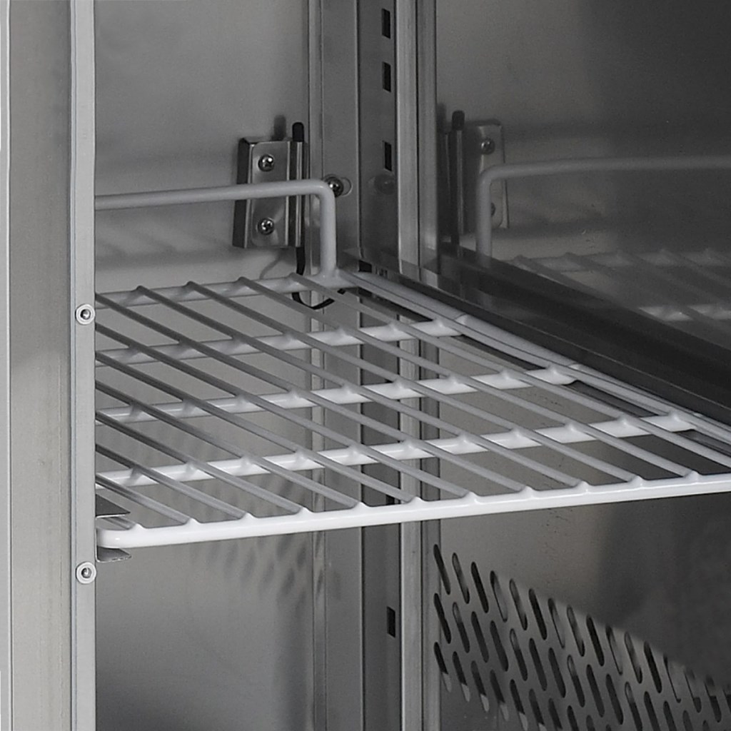 TEFCOLD SA910 — компактный и надёжный холодильный стол для профессиональных кухонь и предприятий общественного питания. Он сочетает рабочую поверхность для нарезки, вместительное охлаждаемое пространство и эффективное управление температурой, обеспечивая удобство работы и сохранность продуктов.