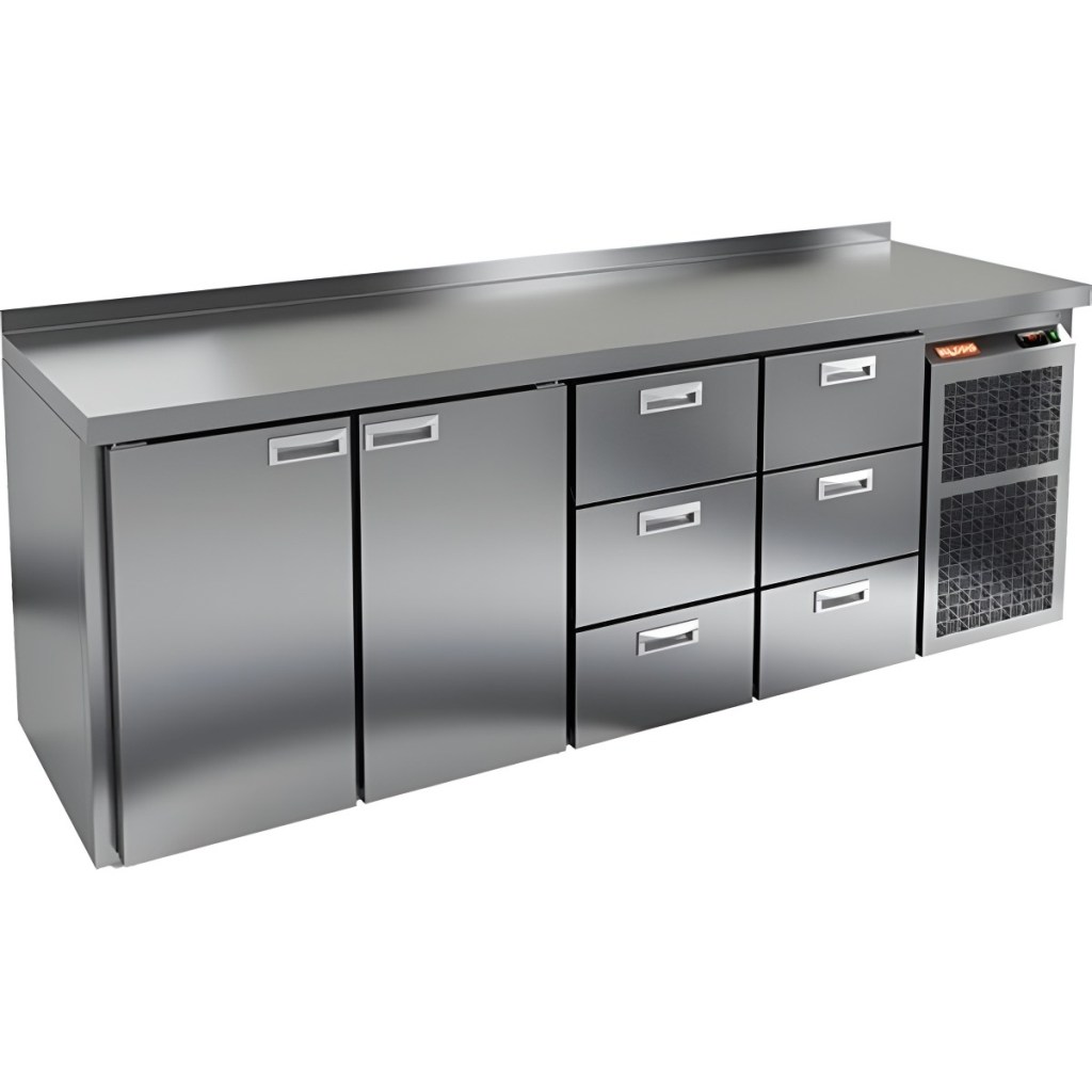 Каталог оборудования Холодильное оборудованиеСтолы охлаждаемыеСтолы холодильные среднетемпературныеСтол холодильный среднетемпературный HiCold GN 1133 BR2 TN Стол холодильный среднетемпературный HiCold GN 1133 BR2 TN Код товара: 062-299 Поделиться: WhatsAppTelegram СравнитьДобавить в КПВ избранное 0 275 932 ₽ В корзину 0 шт Под заказСамовывоз сегодня бесплатно Взять в кредит Купить в лизинг Получить консультацию в WhatsApp Описание Характеристики Отзывы 0 Стол холодильный среднетемпературный HiCold GN 1133 BR2 TN сочетает рабочую поверхность для раскатки теста и подготовки ингредиентов с камерой для охлаждения и кратковременного хранения скоропортящихся продуктов и напитков. Это оборудование отлично подходит для предприятий общественного питания, обеспечивая удобство и высокую производительность. Особенности: Увеличенный объём камеры для хранения большего количества продуктов. Климатическое исполнение Pro Line обеспечивает работу при температуре до +40 °C. Полки и направляющие выполнены по стандарту GN для совместимости с профессиональным оборудованием. Прочный цельнозаливной корпус из нержавеющей стали с 50 мм изоляцией для высокой герметичности и долговечности. Надёжный электронный блок управления с несколькими режимами оттаивания для стабильной работы. Вентилятор повышенной мощности обеспечивает равномерное и быстрое охлаждение. Интеллектуальная система автоматического размораживания. Термическое выпаривание конденсата предотвращает накопление влаги. Энергоэффективный компрессор снижает затраты на электроэнергию. Упрощённый доступ к агрегатам для быстрого и удобного сервисного обслуживания. Двери оборудованы доводчиками для мягкого и плотного закрытия. Регулируемые по высоте низкие ножки обеспечивают устойчивость на любой поверхности. Полки рассчитаны на нагрузку до 50 кг, что позволяет хранить тяжелые продукты. Высота борта 50 мм предотвращает падение продуктов со столешницы. HiCold GN 1133 BR2 TN — это надежное и эргономичное решение для профессиональных кухонь, обеспечивающее эффективное охлаждение и удобство в работе. Высокое качество материалов и продуманные технические решения делают этот холодильный стол практичным, энергоэффективным и простым в обслуживании.Изображение товара, представленного на фото, может отличаться от его фактического вида. Показать все Габаритные размеры2395×700×850 ммДиапазон рабочей температурыот -2 до +10 °CРасположение агрегатаБоковое Материал столешницыНержавеющая Тип столаС дверьми и ящиками Тип двериГлухая Объём730 лКоличество дверей2 штКоличество полок2 штКоличество ящиков6 штРазмер полки530×325 ммНапряжение220 ВМощность0,51 кВтТип охлажденияДинамический Тип оттайкиАвтоматическая СтолешницаС бортом Вес нетто192 кгВес брутто211 кгБрендHicoldВсе холодильные столы HicoldВсе нержавеющие холодильные столы Все холодильные столы с бортом Оставить отзыв Еще никто не оставил отзыв на этот товар Похожие товары Перейти в каталог Под заказ 79 911 ₽ Стол холодильный среднетемпературный HiCold GN 1/TN W Под заказ 104 947 ₽ Стол холодильный среднетемпературный Abat СХС-70 с бортом (дверь) С этим товаром покупают В наличии 96 390 ₽ Шкаф холодильный Полюс Carboma R560 В наличии 58 095 ₽ Витрина холодильная для ингредиентов HICOLD VRTU 1835 1/3 Ранее просмотрено Под заказ Цена по запросу Витрина холодильная настольная Cooleq CW-70 BLACK