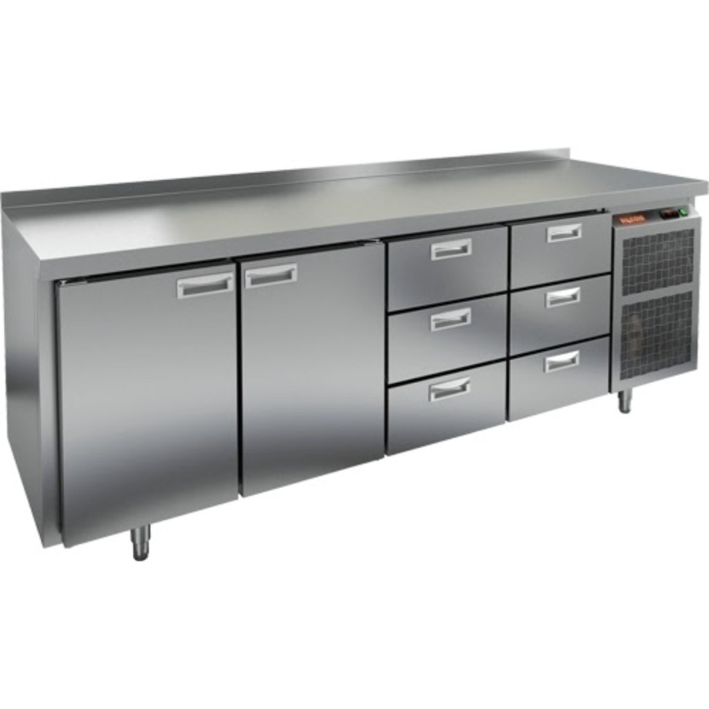 Каталог оборудования Холодильное оборудованиеСтолы охлаждаемыеСтолы морозильные низкотемпературныеСтол морозильный HiCold BN 1133/BT Стол морозильный HiCold BN 1133/BT Код товара: 062-077 Поделиться: WhatsAppTelegram СравнитьДобавить в КПВ избранное 0 297 351 ₽ В корзину 0 шт В наличииСамовывоз сегодня бесплатно Взять в кредит Купить в лизинг Получить консультацию в WhatsApp Описание Характеристики Отзывы 0 Инструкции 2 Стол морозильный HiCold BN 1133/BT предназначен для заморозки и хранения скоропортящихся продуктов и напитков на предприятиях общественного питания и торговли. Он сочетает в себе удобство использования и высокую эффективность. Управление осуществляется с помощью простой и понятной электронной панели. Конструкция корпуса и столешницы выполнена из прочной нержавеющей стали, что обеспечивает долговечность и гигиеничность оборудования. В комплект поставки входят 2 полки, что обеспечивает больше пространства для хранения продуктов различного ассортимента. Особенности: Автоматические доводчики дверей с фиксацией в открытом положении — для комфортной загрузки и выгрузки продуктов; Легкозаменяемые магнитные уплотнители — обеспечивают плотное закрытие дверей и снижают теплопотери; Регулируемые по высоте ножки — позволяют устанавливать стол на неровных поверхностях; Толщина столешницы — 50 мм; Толщина теплоизоляции — 50 мм — для сохранения стабильной температуры; Высота борта — 50 мм — предотвращает затекание жидкости и обеспечивает чистоту на рабочем месте. Морозильный стол HiCold BN 1133/BT — это надежное и практичное оборудование, обеспечивающее качественное хранение продуктов и удобство в ежедневной работе персонала кухни.Изображение товара, представленного на фото, может отличаться от его фактического вида. Показать все Габаритные размеры2280×500×850 ммДиапазон рабочей температурыот -18 до -10 °CРасположение агрегатаБоковое Материал столешницыНержавеющая Тип столаС дверьми и ящиками Тип двериГлухая Объём460 лКоличество дверей2 штКоличество полок2 штКоличество ящиков6 штРазмер полки330×325 ммНапряжение220 ВМощность0,75 кВтТип охлажденияДинамический Тип оттайкиАвтоматическая СтолешницаС бортом Вес нетто135 кгВес брутто155 кгБрендHicoldВсе морозильные столы HicoldВсе морозильные столы с бортом Оставить отзыв Еще никто не оставил отзыв на этот товар Паспорт на HICOLD BN 1133/BT.pdfДекларация о соответствии.pdf Ранее просмотрено Под заказ 325 219 ₽ Сплит-система холодильная среднетемпературная Север MGS 425 S (с ВПУ) В наличии 131 756 ₽ Макароноварка Tatra TEP.47 (серия 700)