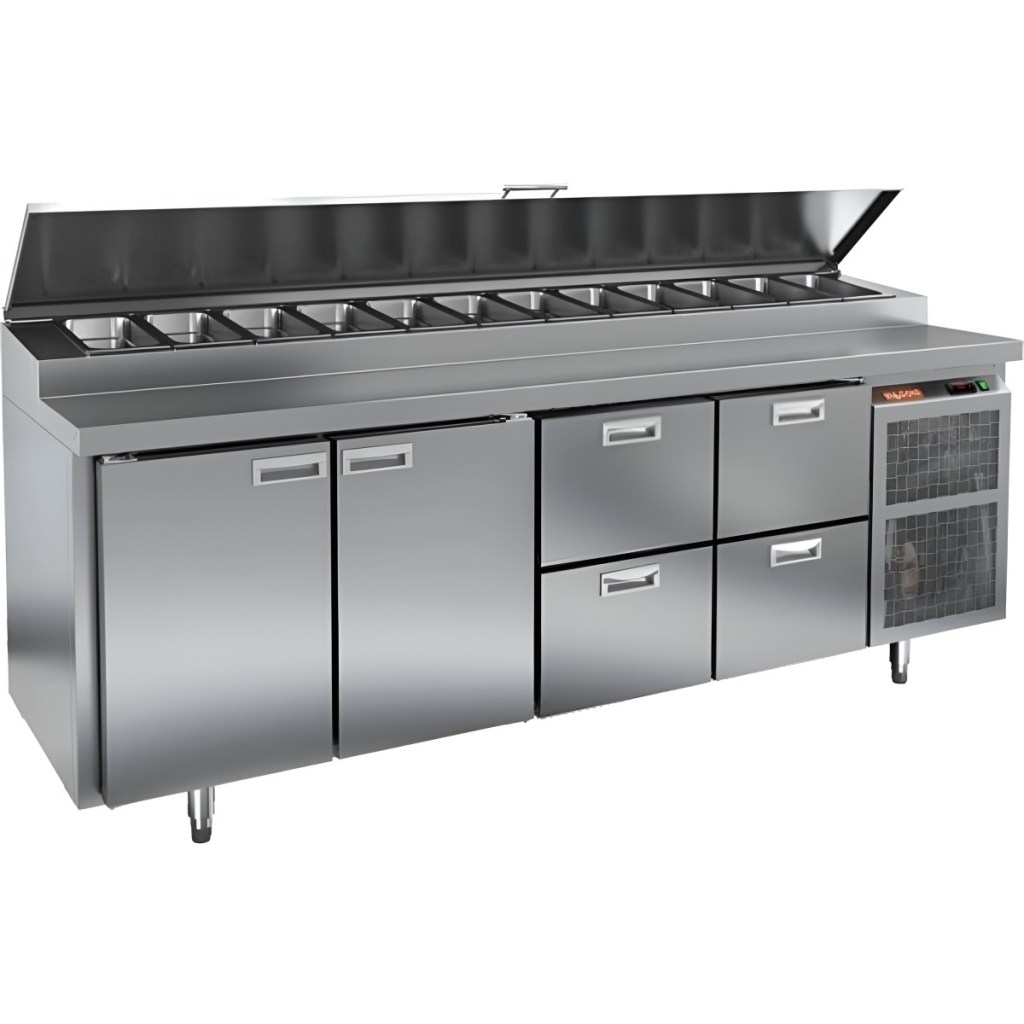 Каталог оборудования Холодильное оборудованиеСтолы охлаждаемыеСтолы холодильные для пиццыСтол холодильный для пиццы HiCold PZ1-1122/GN (1/3H) Стол холодильный для пиццы HiCold PZ1-1122/GN (1/3H) Код товара: 064-694 Поделиться: WhatsAppTelegram СравнитьДобавить в КПВ избранное 0 311 842 ₽ В корзину 0 шт Под заказСамовывоз сегодня бесплатно Взять в кредит Купить в лизинг Получить консультацию в WhatsApp Описание Характеристики Отзывы 0 Стол холодильный для пиццы HiCold PZ1-1122GN (1/3H) — профессиональное оборудование для ресторанов, кафе и предприятий торговли. Он совмещает рабочую поверхность для раскатки теста и подготовки ингредиентов с охлаждаемым блоком для кратковременного хранения продуктов и напитков. Корпус и столешница выполнены из нержавеющей стали, что гарантирует долговечность и лёгкость ухода. Основные особенности: Динамическая система охлаждения — равномерное распределение холода Автоматическая оттайка — поддержка стабильной работы без наледи Электронная панель управления — точная настройка температуры и режимов 2 вместительные полки формата GN 1/1 4 выдвижных ящика для хранения дополнительных ингредиентов Автоматические доводчики дверей с фиксатором открытого положения — удобство загрузки и выгрузки Легкозаменяемые магнитные уплотнители — поддержание герметичности Открытая агрегатная часть — облегчённый доступ к техническим элементам Регулируемые по высоте ножки — установка по уровню Максимальная глубина гастроёмкостей: 150 мм (крайняя правая — 100 мм) Глубина рабочей поверхности: 324 мм Толщина столешницы и теплоизоляции: 50 мм Вместимость салат-бара: до 12 гастроёмкостей Стол холодильный HiCold PZ1-1122GN (1/3H) — функциональный и удобный стол для пиццы и салатов, совмещающий рабочую поверхность, охлаждаемый блок, полки и ящики для хранения. Разная глубина гастроёмкостей и продуманная организация рабочего пространства делают его оптимальным решением для профессиональной кухни.Изображение товара, представленного на фото, может отличаться от его фактического вида. Показать все Габаритные размеры2280×700×1000 ммДиапазон рабочей температурыот +2 до +10 °CРасположение агрегатаБоковое Материал столешницыНержавеющая Тип столаС дверьми и ящиками Тип двериГлухая Объём660 лТип гастроемкостейGN 1/3 Количество дверей2 штКоличество ящиков4 штРазмер полки530×325 ммНапряжение220 ВМощность0,73 кВтТип охлажденияДинамическое Тип оттайкиАвтоматическая Габариты в упаковке2420×850×1080 ммВес нетто208 кгВес брутто228 кгБрендHicoldВсе холодильные столы для пиццы HicoldВсе нержавеющие холодильные столы для пиццы Оставить отзыв Еще никто не оставил отзыв на этот товар Ранее просмотрено Под заказ 260 272 ₽ Стол холодильный для пиццы HiCold PZ1-113GN (1/3H) Под заказ 250 822 ₽ Стол холодильный для пиццы HiCold PZE1-1112/GN (1/3)