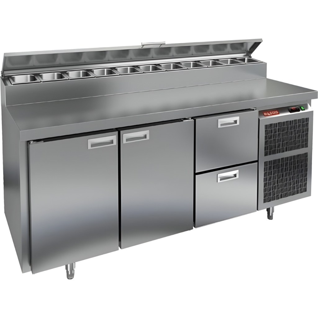 Каталог оборудования Холодильное оборудованиеСтолы охлаждаемыеСтолы холодильные для пиццыСтол холодильный для пиццы HiCold PZ2-112GN (1/6) Стол холодильный для пиццы HiCold PZ2-112GN (1/6) Код товара: 064-752 Поделиться: WhatsAppTelegram СравнитьДобавить в КПВ избранное 0 244 971 ₽ В корзину 0 шт Под заказСамовывоз сегодня бесплатно Взять в кредит Купить в лизинг Получить консультацию в WhatsApp Описание Характеристики Отзывы 0 Стол холодильный для пиццы HiCold PZ2-112GN (1/6) предназначен для кухонь и предприятий общественного питания. Он используется для раскатки теста, подготовки ингредиентов для пиццы, салатов и других блюд, а также для охлаждения и кратковременного хранения скоропортящихся продуктов. Модель совмещает нержавеющую рабочую поверхность и охлаждаемый отсек с 2 дверями и 2 ящиками, обеспечивая удобный доступ к ингредиентам и эффективное хранение. Особенности: Динамическая система охлаждения для равномерного поддержания температуры Автоматическая оттайка для удобного обслуживания Электронная панель управления для точной настройки параметров Вместительная внутренняя полка формата GN 1/1 (размер 530×325 мм) 2 двери и 2 вместительных ящика для хранения ингредиентов Автоматические доводчики дверей с фиксатором открытого положения Легкозаменяемые магнитные уплотнители для герметичности Открытая агрегатная часть для легкого доступа к компонентам Регулируемые по высоте ножки для устойчивости Нержавеющая столешница глубиной 486 мм и толщиной 50 мм — устойчива к коррозии, легко моется и гигиенична Толщина теплоизоляции: 50 мм Максимальная глубина гастроемкостей: 100 мм Вместимость салат-бара: 11 гастроемкости Стол холодильный HiCold PZ2-112GN (1/6) — это надежный и функциональный стол для пиццы. Он объединяет рабочую поверхность и охлаждаемый отсек, упрощает хранение и подготовку ингредиентов, обеспечивает удобство работы повара и соответствует стандартам профессиональной кухни. Изображение товара, представленного на фото, может отличаться от его фактического вида. Показать все Габаритные размеры1835×700×1000 ммДиапазон рабочей температурыот +2 до +10 °CРасположение агрегатаБоковое Материал столешницыНержавеющая Тип столаС дверьми и ящиками Тип двериГлухая Объём505 лТип гастроемкостейGN 1/6 Количество дверей2 штКоличество ящиков2 штРазмер полки530×325 ммНапряжение220 ВМощность0,5 кВтТип охлажденияДинамическое Тип оттайкиАвтоматическая Габариты в упаковке2000×850×1140 ммВес нетто172 кгВес брутто210 кгБрендHicoldВсе холодильные столы для пиццы HicoldВсе нержавеющие холодильные столы для пиццы Оставить отзыв Еще никто не оставил отзыв на этот товар Ранее просмотрено Под заказ 245 242 ₽ Стол холодильный для пиццы HiCold PZ2-22GN (1/6) Под заказ 147 321 ₽ Стол холодильный для пиццы HiCold PZ1-1GN (1/3) Под заказ 217 161 ₽ Стол холодильный для пиццы HiCold PZE1-112GN (1/3)