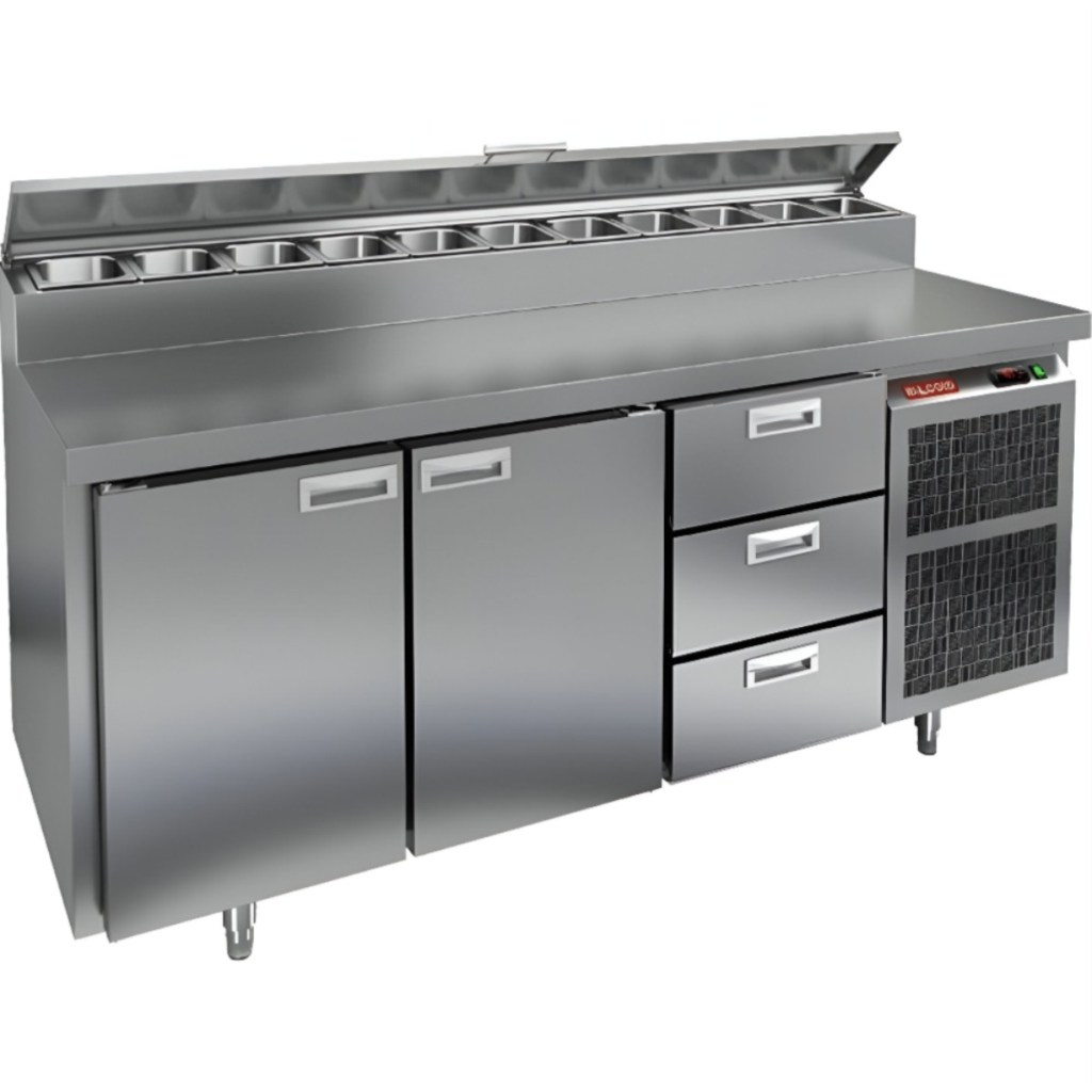 Каталог оборудования Холодильное оборудованиеСтолы охлаждаемыеСтолы холодильные для пиццыСтол холодильный для пиццы HiCold PZ2-113GN (1/6) Стол холодильный для пиццы HiCold PZ2-113GN (1/6) Код товара: 064-761 Поделиться: WhatsAppTelegram СравнитьДобавить в КПВ избранное 0 260 272 ₽ В корзину 0 шт Под заказСамовывоз сегодня бесплатно Взять в кредит Купить в лизинг Получить консультацию в WhatsApp Описание Характеристики Отзывы 0 Инструкции 2 Стол холодильный для пиццы HiCold PZ2-113GN (1/6) предназначен для кухонь и предприятий общественного питания. Он используется для раскатки теста, подготовки ингредиентов для пиццы, салатов и других блюд, а также для охлаждения и кратковременного хранения скоропортящихся продуктов. Модель совмещает нержавеющую рабочую поверхность и охлаждаемый отсек с 2 дверьми и 3 ящиками, обеспечивая удобный доступ к ингредиентам и эффективное хранение. Особенности: Динамическая система охлаждения для равномерного поддержания температуры Автоматическая оттайка для удобного обслуживания Электронная панель управления для точной настройки параметров Вместительная внутренняя полка формата GN 1/1 (размер 530×325 мм) 2 двери и 3 вместительных ящика для хранения ингредиентов Автоматические доводчики дверей с фиксатором открытого положения Легкозаменяемые магнитные уплотнители для герметичности Открытая агрегатная часть для легкого доступа к компонентам Регулируемые по высоте ножки для устойчивости Нержавеющая столешница глубиной 486 мм и толщиной 50 мм — устойчива к коррозии, легко моется и гигиенична Толщина теплоизоляции: 50 мм Максимальная глубина гастроемкостей: 100 мм Вместимость салат-бара: 11 гастроемкости Стол холодильный HiCold PZ2-113GN (1/6) — это надежный и функциональный стол для пиццы. Он объединяет рабочую поверхность и охлаждаемый отсек, упрощает хранение и подготовку ингредиентов, обеспечивает удобство работы повара и соответствует стандартам профессиональной кухни. Изображение товара, представленного на фото, может отличаться от его фактического вида. Показать все Габаритные размеры1835×700×1000 ммДиапазон рабочей температурыот +2 до +10 °CРасположение агрегатаБоковое Материал столешницыНержавеющая Тип столаС дверьми и ящиками Тип двериГлухая Объём505 лТип гастроемкостейGN 1/6 Количество дверей2 штКоличество ящиков3 штРазмер полки530×325 ммНапряжение220 ВМощность0,46 кВтТип охлажденияДинамическое Тип оттайкиАвтоматическая Вес нетто172 кгВес брутто210 кгБрендHicoldВсе холодильные столы для пиццы HicoldВсе нержавеющие холодильные столы для пиццы Оставить отзыв Еще никто не оставил отзыв на этот товар Паспорт на HICOLD PZ2-113GN.pdfДекларация о соответствии.pdf Ранее просмотрено Под заказ 217 161 ₽ Стол холодильный для пиццы HiCold PZE1-112GN (1/3)