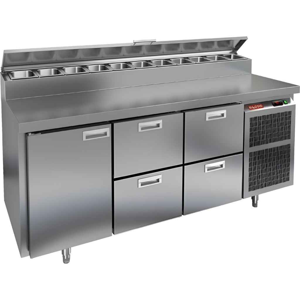 Каталог оборудования Холодильное оборудованиеСтолы охлаждаемыеСтолы холодильные для пиццыСтол холодильный для пиццы HiCold PZ2-122GN (1/6) Стол холодильный для пиццы HiCold PZ2-122GN (1/6) Код товара: 064-756 Поделиться: WhatsAppTelegram СравнитьДобавить в КПВ избранное 0 275 572 ₽ В корзину 0 шт Под заказСамовывоз сегодня бесплатно Взять в кредит Купить в лизинг Получить консультацию в WhatsApp Описание Характеристики Отзывы 0 Стол холодильный для пиццы HiCold PZ2-122GN (1/6) предназначен для кухонь и предприятий общественного питания. Он используется для раскатки теста, подготовки ингредиентов для пиццы, салатов и других блюд, а также для охлаждения и кратковременного хранения скоропортящихся продуктов. Модель совмещает нержавеющую рабочую поверхность и охлаждаемый отсек с 1 дверью и 4 ящиками, обеспечивая удобный доступ к ингредиентам и эффективное хранение. Особенности: Динамическая система охлаждения для равномерного поддержания температуры Автоматическая оттайка для удобного обслуживания Электронная панель управления для точной настройки параметров Вместительная внутренняя полка формата GN 1/1 (размер 530×325 мм) 1 дверь и 4 вместительных ящика для хранения ингредиентов Автоматические доводчики дверей с фиксатором открытого положения Легкозаменяемые магнитные уплотнители для герметичности Открытая агрегатная часть для легкого доступа к компонентам Регулируемые по высоте ножки для устойчивости Нержавеющая столешница глубиной 486 мм и толщиной 50 мм — устойчива к коррозии, легко моется и гигиенична Толщина теплоизоляции: 50 мм Максимальная глубина гастроемкостей: 100 мм Вместимость салат-бара: 11 гастроемкости Стол холодильный HiCold PZ2-122GN (1/6) — это надежный и функциональный стол для пиццы. Он объединяет рабочую поверхность и охлаждаемый отсек, упрощает хранение и подготовку ингредиентов, обеспечивает удобство работы повара и соответствует стандартам профессиональной кухни. Изображение товара, представленного на фото, может отличаться от его фактического вида. Показать все Габаритные размеры1835×700×1000 ммДиапазон рабочей температурыот +2 до +10 °CРасположение агрегатаБоковое Материал столешницыНержавеющая Тип столаС дверьми и ящиками Тип двериГлухая Объём350 лТип гастроемкостейGN 1/6 Количество дверей1 штКоличество ящиков4 штРазмер полки530×325 ммНапряжение220 ВМощность0,5 кВтТип охлажденияДинамическое Тип оттайкиАвтоматическая Габариты в упаковке2000×850×1140 ммВес нетто172 кгВес брутто210 кгБрендHicoldВсе холодильные столы для пиццы HicoldВсе нержавеющие холодильные столы для пиццы Оставить отзыв Еще никто не оставил отзыв на этот товар Ранее просмотрено В наличии 250 642 ₽ Стол холодильный для пиццы HiCold PZ2-1111GN (1/6)