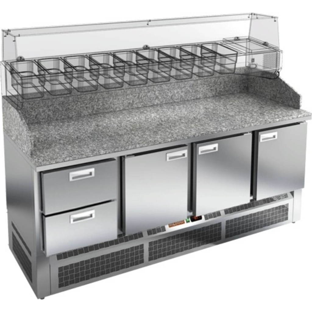 Стол холодильный для пиццы HiCold PZE3-2111/GN камень предназначен для использования на предприятиях общественного питания и торговли. Он идеально подходит для раскатки теста, подготовки ингредиентов и кратковременного хранения скоропортящихся продуктов и напитков. Благодаря совмещению охлаждаемого объёма и просторной рабочей поверхности, стол значительно упрощает и ускоряет процесс приготовления блюд.