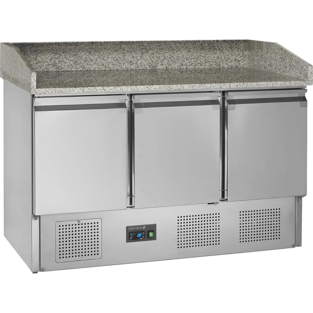 Стол холодильный для пиццы TEFCOLD PT1365 предназначен для обработки ингредиентов и хранения полуфабрикатов из мяса, рыбы и других продуктов на предприятиях общественного питания и торговли. Модель оснащена нижним агрегатным отсеком, столешницей с задним и боковыми бортами, а также тремя секциями с глухими распашными дверьми, интегрированными рукоятками и кнопочной панелью с цифровым дисплеем. Корпус и внутренняя облицовка выполнены из нержавеющей стали SS304, столешница и борта — из гранита.