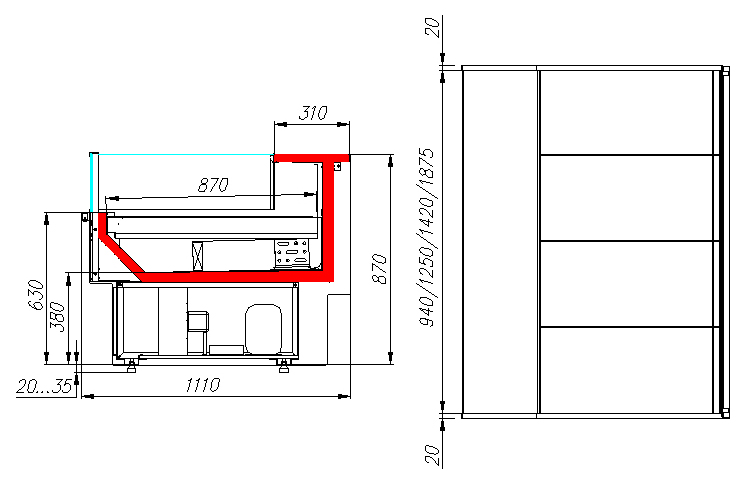• Глубина выкладки: 870 мм.
