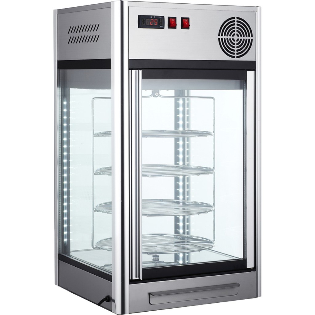 • 4 вращающиеся хромированные полки диаметром 350 мм, позволяющие представить ассортимент максимально удобно.